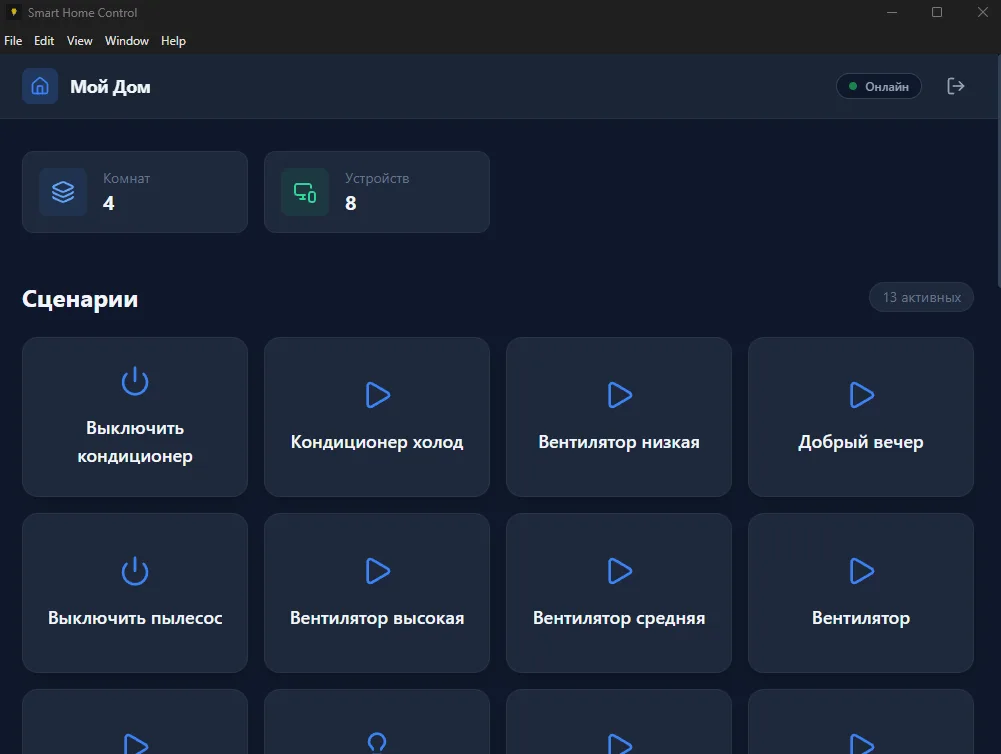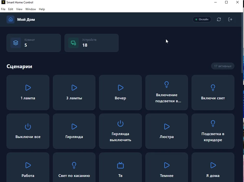 После авторизации получите полный список своих устройств и сценариев — настройте управление на ПК.