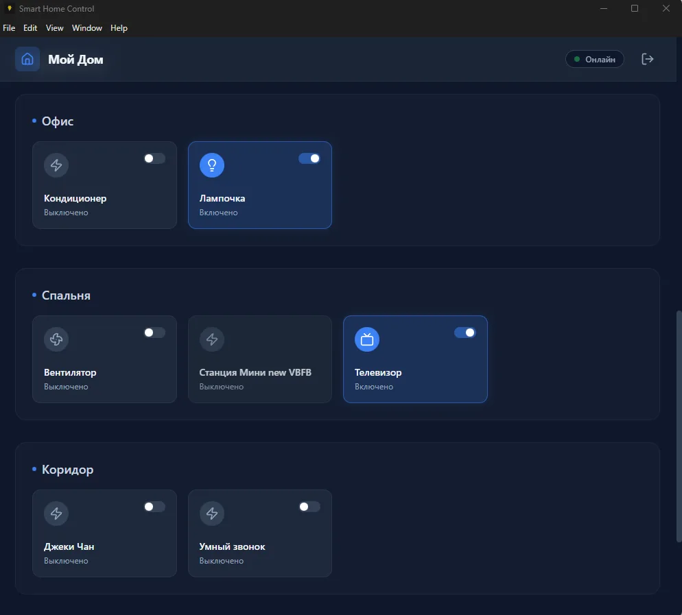 Быстрое переключение состояний устройств (включить / выключить) и запуск сценариев — всё из интерфейса ПК.