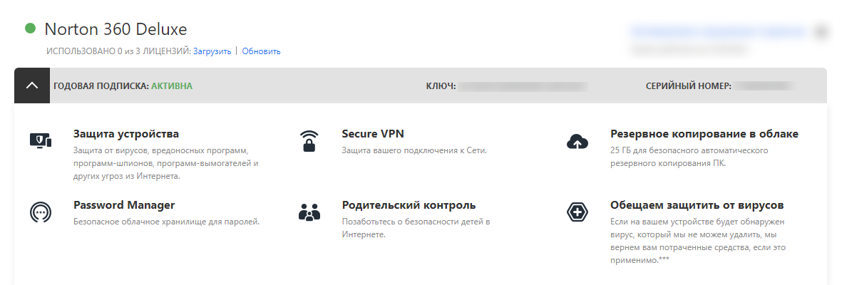 Ну и по конкретному продукту “Norton 360” – всё прошло без проблем, благо в письмах к ключам прилагаются понятные инструкции со ссылками. Единственное условие, о котором надо помнить, это вовремя включать VPN (при установке и обновлении), т.к. разработчики антивируса исключили Россию из числа друзей, к сожалению.