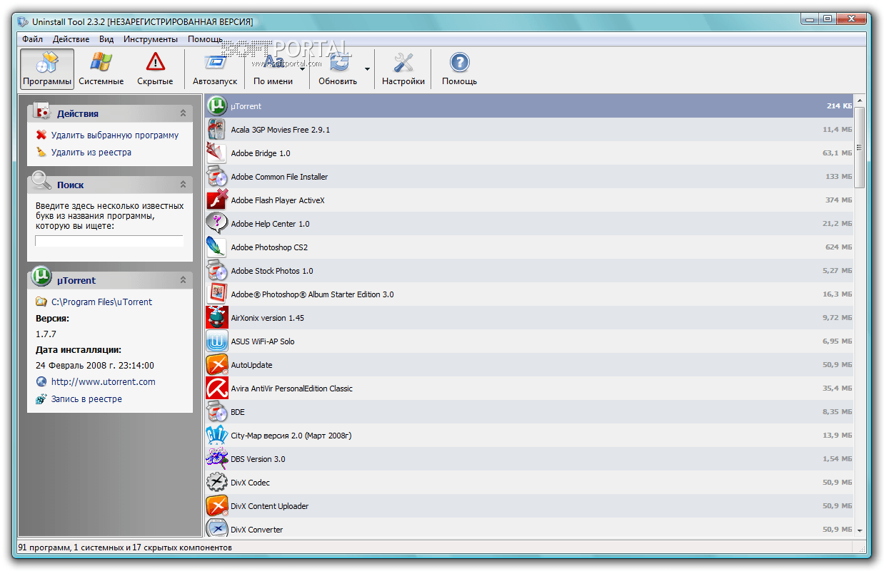 - удаление программ, деинсталляция которых стандартными средствами невозможна